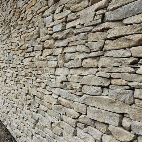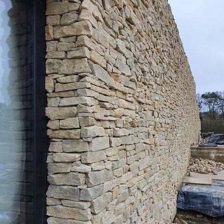 Experience the unique beauty of ASHFORD CLADDING. Our 50mm quarry cut Cotswold limestone stones deliver a drystone effect to your walls like no other, with their golden hues and pale grey tones.