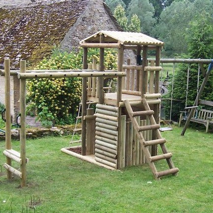 The HAMBLETON Play Equipment is the perfect addition to any backyard. With a variety of activities, such as monkey bars, a somersault bar, and a double-width rope ladder, this Adventure Fort is sure to provide hours of fun for the whole family.