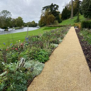 BURCHETTS BLEND is the perfect choice for paths and driveways. This timeless blend of rounded Cotswold pebbles and self-binding fines offers a sophisticated English garden style with minimal upkeep.