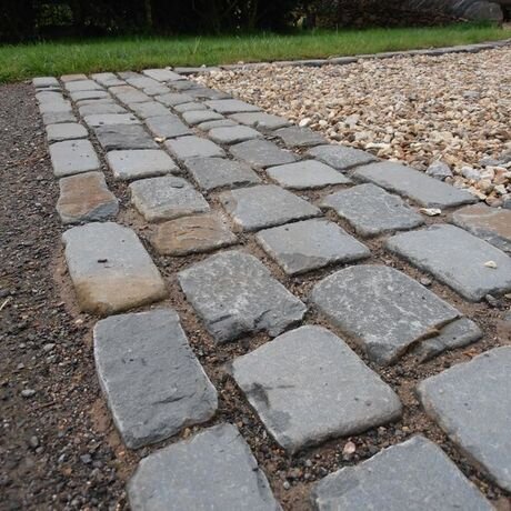 For a timeless and stylish look, choose WELSH BLUE SANDSTONE COURTYARD COBBLES - 100mm by random lengths from Bradgate Grange Online.