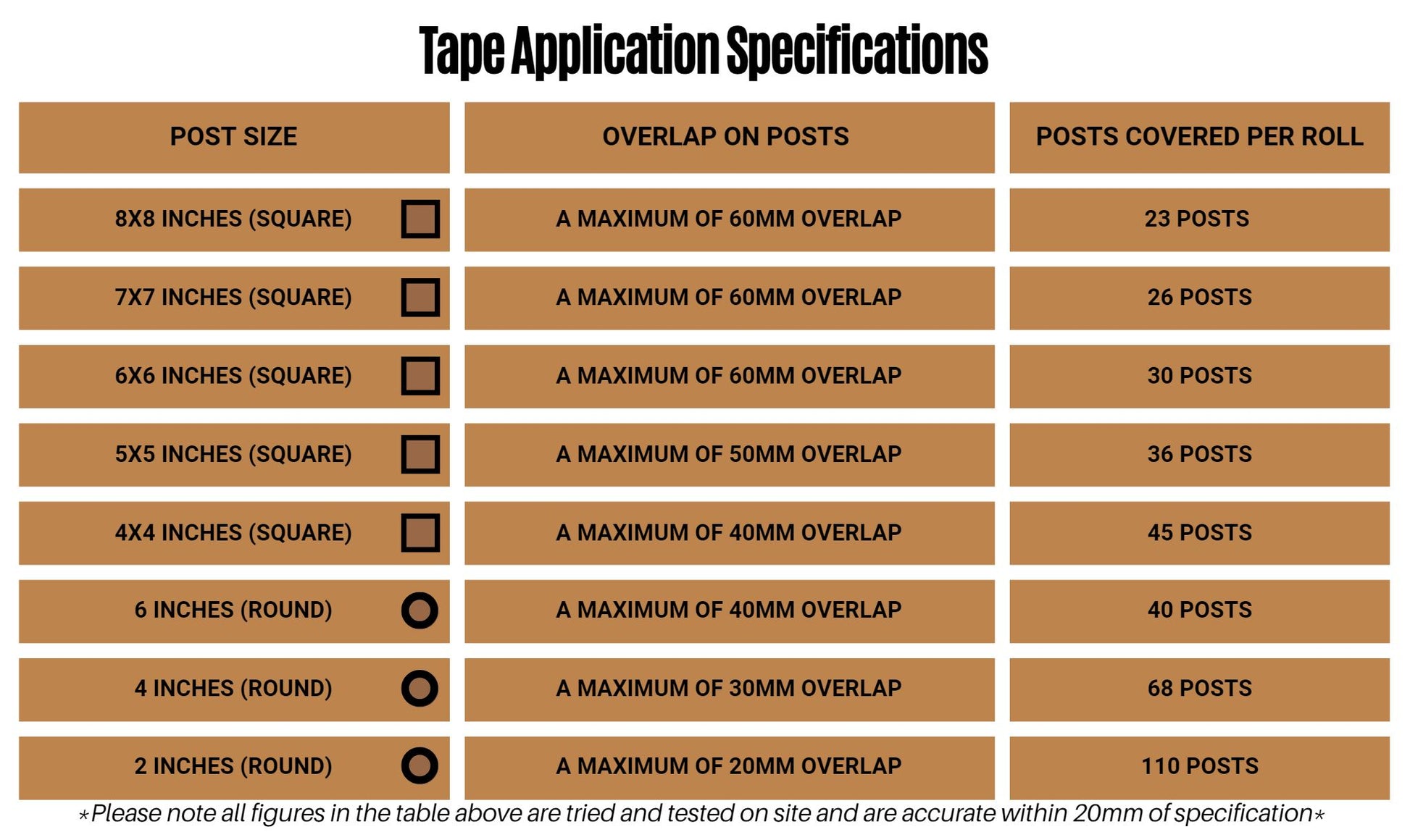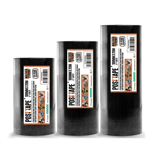 PosTTape® is a non-butyl self-sealing tape manufactured from a massively strong polymer acrylic adhesive, which gives a completely waterproof and weatherproof seal. With a permanent adhesive bond for 50 years and a 25-year guarantee, this greatly adds to the life of your fence posts. It is tested with all timber treatments.